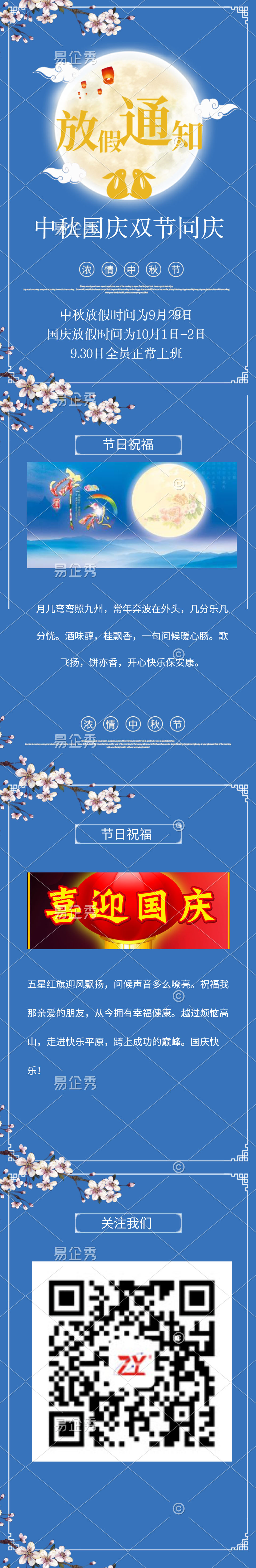 Mid Autumn Festival National Day Holiday Notice